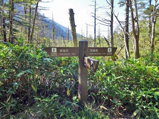 2022/9/30(12:48) 「岳沢分岐」。 「河童橋」まで、0.7km。 |
