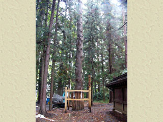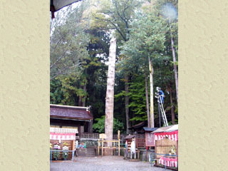 諏訪大社では七年に一度の寅と申の年に宝殿を新築し、社殿の四隅にあるモミの大木を