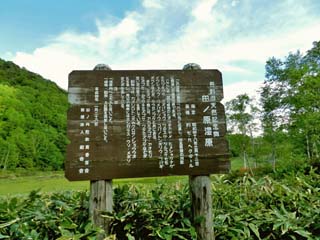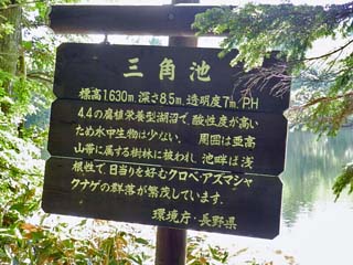 2012/6/25(15:40) 「三角池」。 「酸性度が高いため水中生物は少ない」とある。 写真をクリックすると説明板が拡大表示 (600x450)されます。