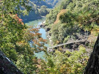 2015/10/25(10:26) 「下の展望台」から見る「天竜峡」。 「天竜川」上流方向の景色である。 「上の展望台」に比べると手前の木の葉がすっきりとし、 「天竜川」がカーブする様子を見ることができる。 写真をクリックすると縦に撮る写真(450x600)が 表示されます。 |