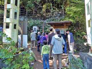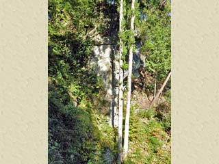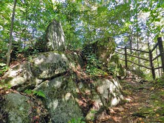 2015/10/25(10:49) 「樵廡洞(しょぶどう)」。 2本の木の陰になっている部分が「庇状」になっている。 写真をクリックすると「樵廡洞」の案内板(600x450)が 表示されます。 |