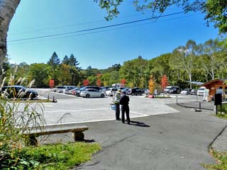 2014/9/29(11:58) 「旧院坊屋敷跡」。 参道沿いには、12の院坊があったという。 ここには、参道途中では唯一の「トイレ」があるのだが、 この日は、工事中のため使用できず。 写真に写るのは、工事用車両である。 |