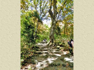 2014/9/29(12:03,12:04) 「旧講堂跡」を過ぎると、徐々に登坂になり、この登坂は「奥社」まで続く。 |