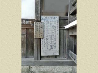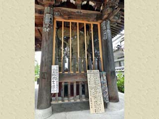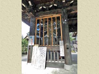 「山門の仁王さまに向かい手を合わせて一礼してから、願いを込めてこの下駄を履くと 諸願が成就される」とある。 右の写真をクリックすると拡大写真(600x450)が表示されます。 |