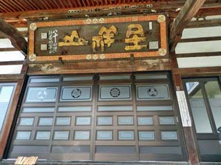 「本堂」に架かる「扁額」。 「象形文字」なのだろうか。 「吉祥山」と書かれるのであろう。 写真をクリックすると「扁額」を切抜く画像(600x450)が 表示されます。 |