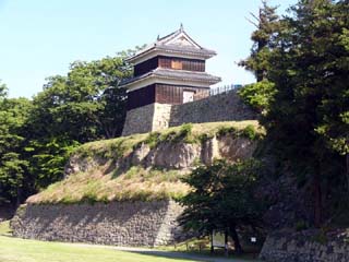 2010/6/6(8:46) 「上田城北櫓」。 「東虎口櫓門」を挟み、「上田城南櫓」の反対側 にあり、この中にも入ることができる。 |