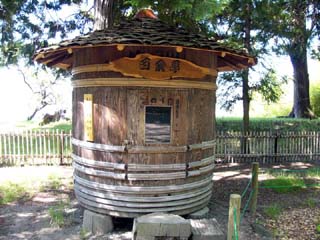 2010/6/6(8:15&8:25) 「酒樽茶室」。 「真田神社」の境内にある。左が「亀庵」、右が「百余亭」。 使い勝手の程は分からぬが、なんとも粋な「茶室」である。 |
