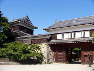 2010/6/6(8:30) 「東虎口櫓門」。 「虎口」とは、城の通路の出口のこと。 左にあるのが、「上田城南櫓」。 |