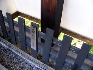 2010/6/6(8:28) 「真田石」。 案内板の左に見える大きな石が「真田石」。 城内一の大石(高さ約2.5m、幅約3m)で、 真田幸村の兄「真田信之公」の松代移封のとき、 この石を家宝にと、持ち去ろうとしたが、 「びくり」ともしなかったという。 |