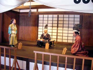 2010/6/6(8:53) 右に「真田信繁(幸村)」。「幸村」は俗称で、 本名は「信繁」。 中央に「信繁」の父「真田昌幸」。この「昌幸」 が、「上田城」を築城。青年時代は「武田信玄」 に仕えたという。 左は「信繁」の長男「真田幸昌(大助)」。 父「信繁」と共に、大阪冬の陣、夏の陣と参戦 するが、この戦いにおいて父子共に戦死。 |
