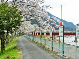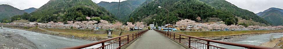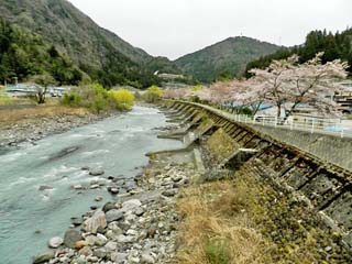 2012/4/13(15:31) 遠山川右岸に咲く「河津桜」。 道の駅「遠山郷」のすぐ裏(南東側)では、 平成13年に植栽された「河津桜」が咲く。