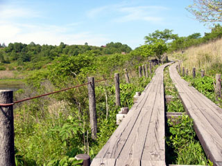2009/6/26(8:08) 湿原北側の木道を歩く(湿原の周りは 東側を除き、木道になっている) |