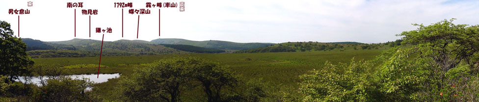 | 2009/6/26(8:18) 鎌ヶ池の近くで見る「八島ヶ原湿原」と「霧ヶ峰(車山)」方向の景色 |