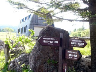 2009/6/26(8:37) 湿原北側にある「奥霧小屋」 近くには「鎌ヶ池キャンプ場」がある |