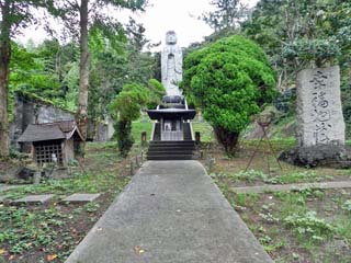 「幸福地蔵」を振り返る。 向かって右側には、これも大きな「幸福地蔵」の 石柱が立つ。 |