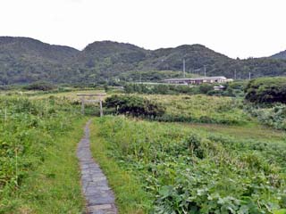 2016/9/27(8:51) 案内版が立つ場所から「大野亀」の方向を撮る。 「大野亀」への入口(登山口)手前に立つ「鳥居」も