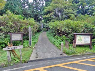2016/9/28(6:51) 「大佐渡石名天然杉」の遊歩道に入る。 遊歩道を約650m歩くと「ドンデン縦走路」に出る。