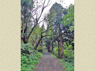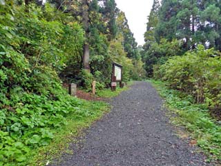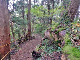 「四天王杉」への入口。 「四天王杉」は、右に坂を下りたところに立つ。 |