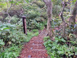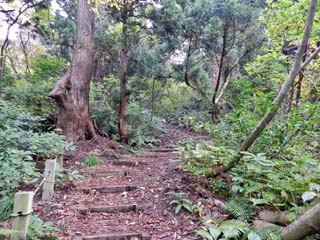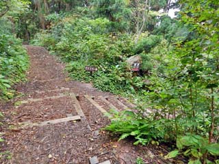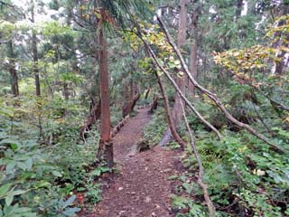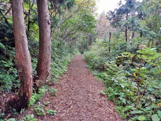 高低差20m程の道は、ウッドチップの敷かれない 通常の縦走路となる。 |