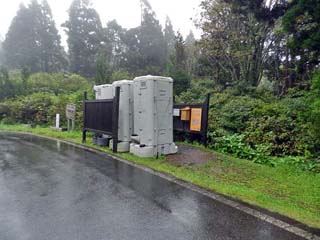 「県有林作業道入口(和木登山口)」にある エチケットトイレ。 チップ式のトイレで、入口前には普通車20台程の