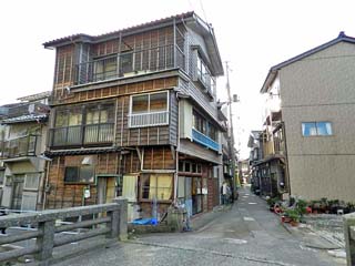 2012/11/4(14:59,14:59) 「筒石漁港案内図(左)」と「磯部の浜 港南公園(右)」。 「断崖下の町並」は、新潟県糸魚川市の「筒石漁港」近くの、海と山側の崖に挟まれた、 狭い平地に3階建ての木造住宅が密集することで知られるが、地図には「断崖下の町並」と 記載されるものの、「糸魚川市」や「観光協会」のHPを見ても、観光スポットとしては 紹介されてなく、普通の住宅地の中にお邪魔するといった感じである。 また、町並みの中に入ってしまうと、駐車場はおろか車も入れない狭い道のため、 車は「磯部の浜 港南公園」の駐車場に止め、先は歩いて散策することとした。 左の写真をクリックすると「案内図」が拡大表示(800x600)されます。 (拡大表示では、「断崖下の町並」の場所を赤線で囲っています)