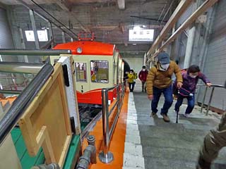 黒部ケーブルカー「黒部湖駅」。 8時50分発のケーブルカーに乗る。 |
