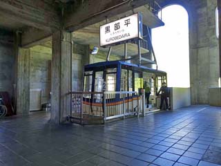 黒部ケーブルカー「黒部平駅」。 8時55分到着。乗車時間は、僅か5分である。 |