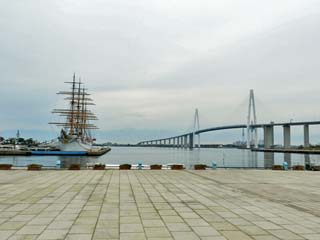 2014/10/31(11:11) 海王丸パークで見る「海王丸」と「新湊大橋」。 |