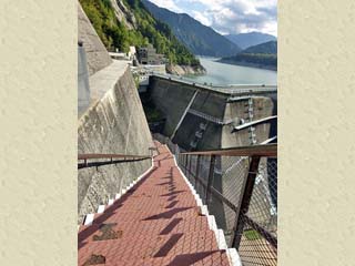 ダム展望台と「外階段折返し」の間にて。 急傾斜で高度感あり。 写真をクリックすると拡大写真(600x450)が 表示されます。 |