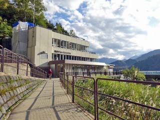 2022/9/29(15:39) 「堰堤(天端)」右岸まで戻る。 写真の建物は、「黒部ダムレストハウス」。 |