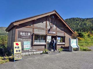 周囲に点在する「池塘」や咲き誇る高山植物を楽しむことができる。 左の写真は、弥陀ヶ原の「バス待合室(バス事務所)」。