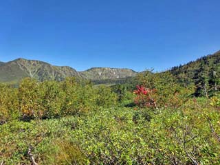 木道沿いに見る「赤い実(ナナカマド)」。 紅葉には少し早いようであった。