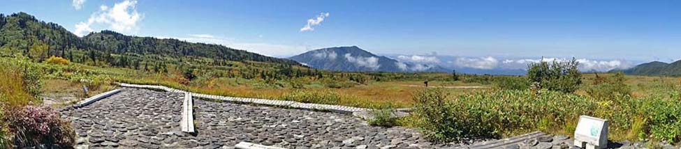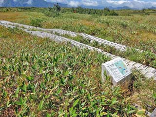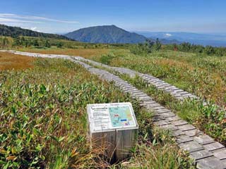 標高約1,900mに位置する広大な高原湿原には、バス停を起点に一周約1時間と