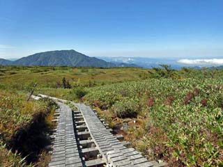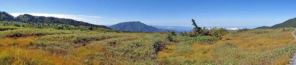 北西方向の景色。 木道の右は「ガキの広場」。 |