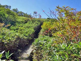 「E地点」手前にて。 遊歩道脇には「ガキの広場」近くでも見た「ミヤマリンドウ」が咲く。