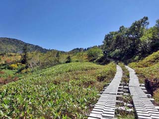 木道沿いに咲く「ミヤマリンドウ」。 写真をクリックすると2.5倍ズームで撮る 「ミヤマリンドウ(600x450)」が表示されます。 |