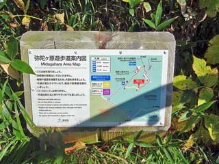 「C地点」に到着。 案内図は随所に設けられており、途中で霧に 巻かれても安心して歩ける。 |