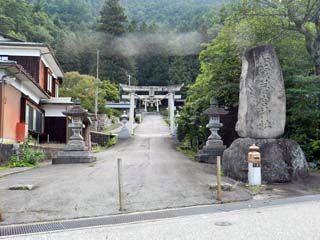「加茂若宮神社」と「瑞岸寺」の参道。 いずれも、「江馬氏館跡公園」の前(東)にあり、「江馬氏」に 縁(ゆかり)のある寺社と思われるのだが、確認できず。 |