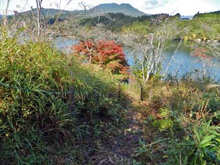 「さざなみ公園」の北側に下りる。 この日、丘の上から北側に下りる道は、草で覆われていたが、左右にはロープが張られ、