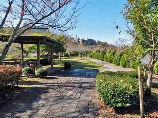 「さざなみ公園」の最高地点。 「桃介像・貞奴のレリーフ」は、「さざなみ公園」の 小高い丘の上にある。 |