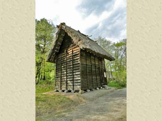 2012/5/7(14:56) 「①東屋荘松家 板倉」。 明治32年(1899)の建築と伝えられる。 「東屋家」は、江戸末期に大相撲界で 人並み外れた怪力で有名になった、 関脇「白真弓肥太右工門」の生家とある。