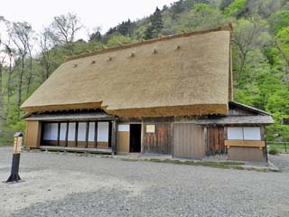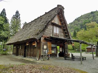 2012/5/7(14:53) 「合掌造り民家園 受付(荒井良造家 主屋)」。 園内には、県指定重要文化財9棟が移築展示され ている。