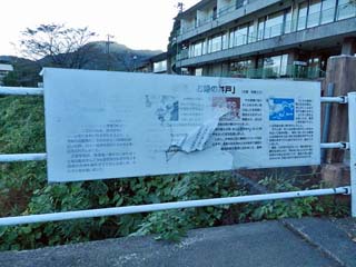 2015/10/26(7:08) 「上有知(こうずち)湊跡」。 番船40艘。美濃和紙を始めとする物資交流や 上流から運ばれてくる木材運搬の中継基地として、 大変重要な湊であったという。 写真をクリックすると「上有知湊跡」の 案内板(800x600)が表示されます。 |