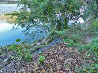 2015/10/26(7:00,7:00) 「前野渡舟場跡」。 「長良川」の左岸、「美濃橋」のすぐ下流にある。 右の写真、一応下を覗いてはみたが、「渡舟場」の痕跡らしきものは、特に残っていないようであった。 左の写真をクリックすると「前野渡舟場跡」の案内板(800x600)が表示されます。 |