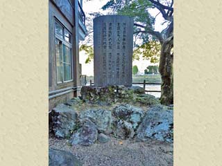 2015/10/26(7:07) 「山陽・藤城の詩碑」。 「住吉(川湊)灯台」の脇に立つ。 文化10年(1813)初冬、「上有知湊」から船で帰る文豪 「頼山陽」との別れを惜しむ郷土の先哲「村瀬藤城」。 その二人が別れるときに賦したという詩が刻まれる。 写真をクリックすると「山陽・藤城の詩碑」の 案内板(800x600)が表示されます。 |