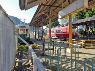 駅舎横には開館時間や休館日が書かれたパネルが貼られていることから、記念館として、 電車に関するパネル等が展示されていると思われる。
