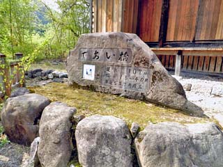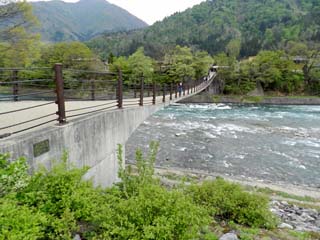 2012/5/7(13:26) 「であい橋」。 下を流れるのは「荘川」。 「荻町地区」は、「であい橋」を渡った「荘川」 の東側にあり、重要伝統的建造物群保存地区と して、世界文化遺産に登録されている。