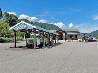 2019/9/26(12:48) レールマウンテンバイク「まちなかコース」の受付と売店。 レールマウンテンバイク「まちなかコース」の受付は、「奥飛騨温泉口駅」の駅舎内にあり、 受付の向かい(上の写真を撮る背中側)には、休憩所がある。 この休憩所には、近所のお爺さんの手作りという「がったん号」が複数置かれ、 一つ一つの形が異なり同じものがない。値札が付いてないため、受付で売物かを確認。 すると、思ったよりも安い値段であったため、気に入ったものを一つ選び購入した。 右の写真をクリックすると拡大写真(450x600)が表示されます。 |