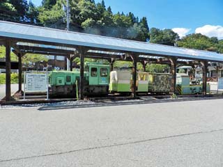 2019/9/26(12:02,12:02) 「奥飛騨温泉口駅」の駅前広場。 レールマウンテンバイク「Gattan Go!!」は、飛騨市神岡町にある体験型乗り物である。 廃線になった「旧神岡鉄道」のレールの上を、専用のマウンテンバイクで走行するもので、 片道3km程の距離を自力(電動アシストあり)でペダルをこぎ、レールの継ぎ目の振動を 「ガッタンゴットン」と感じながら、トンネルを抜け、橋を渡る。 これを往復するから、距離は約6km。往きが下り坂なら、帰りは上り坂ということになる。 コースは2つあり、本ページでは、「奥飛騨温泉口駅」を起点に「神岡鉱山前駅」までの 片道約2.9kmを往復。所要時間約40分~50分の「まちなかコース」を紹介する。 上の写真、「奥飛騨温泉口駅」の駅前広場には、立山カルデラの砂防工事で使用された ディーゼル機関車と神岡鉱山で使用された電気機関車、人車が展示されている。 また、駅前に立つ「観光案内図」には、レールマウンテンバイク「まちなかコース」の 走行ルートが太い点線で描かれている。 左の写真をクリックすると「神岡町観光案内図」が表示されます。 この画像は、1,500x700ピクセルあります。 案内図の文字を読みたいときには、表示された画像をクリックし、スクロールバーをご利用下さい。 右の写真をクリックすると展示される車両を切抜く画像(600x450)が表示されます。 |