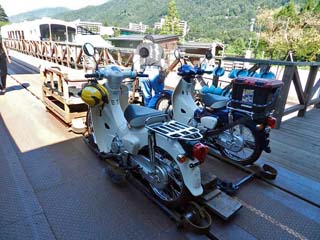 2019/9/26(12:27) オートバイの向きを変えるスタッフ。 帰りは、「木製トロッコ」が先頭を走る。 |